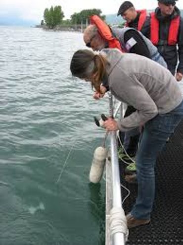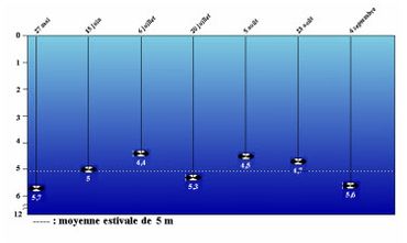 Les mesures de transparence sont faites plusieurs fois entre mai et septembre avec un disque Secchi en trois emplacements sur le lac. Un disque Secchi est un dispositif permettant de mesurer la transparence / la turbidité d'une colonne d'eau. Il consiste en un disque d'une vingtaine de centimètres, partagé en quarts alternés noirs et blancs. Le disque - lesté - est fixé au bout d'un câble. On laisse descendre jusqu'à disparition, on note la profondeur (longueur du câble). On remonte ensuite le dispositif jusqu'à réapparition du disque - notée également. La mesure retenue est le point médian entre ces deux extrêmes. Cet exercice est répété plusieurs fois de suite pour retenir - in fine - la moyenne de l'ensemble des mesures médianes successives.